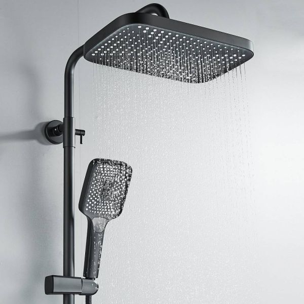 Душевая система Rose R1836H, черный.Монтаж: настенный.Стилистика дизайна: современный стиль.Управление: рычажное.Размер верхнего душа: 31,5x21.Форма верхнего душа: прямоугольная.