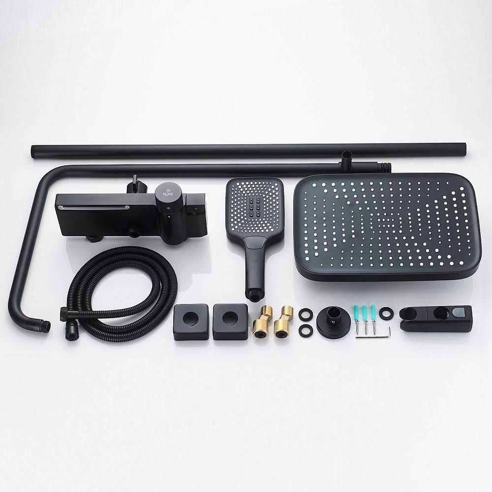 Душевая система с термостатом Rose R1896H-6, черный.Монтаж: настенный.Стилистика дизайна: современный стиль.Управление: термостат.Размер верхнего душа: 31,5x21.Форма верхнего душа: прямоугольная.