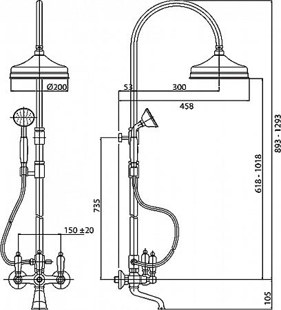 Размер верхнего душа: 20 см