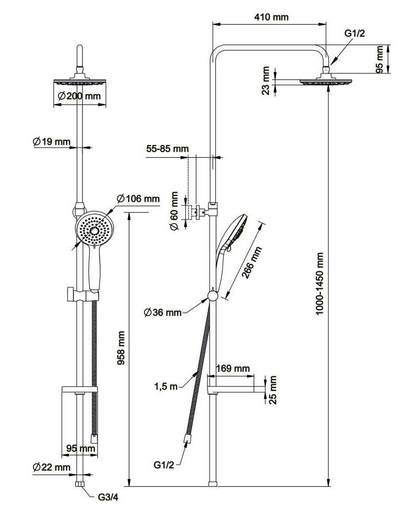 - верхний душ (душевая головка) с регулировкой наклона;
