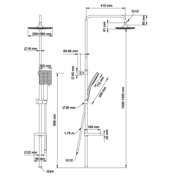 - верхний душ (душевая головка) с регулировкой наклона;