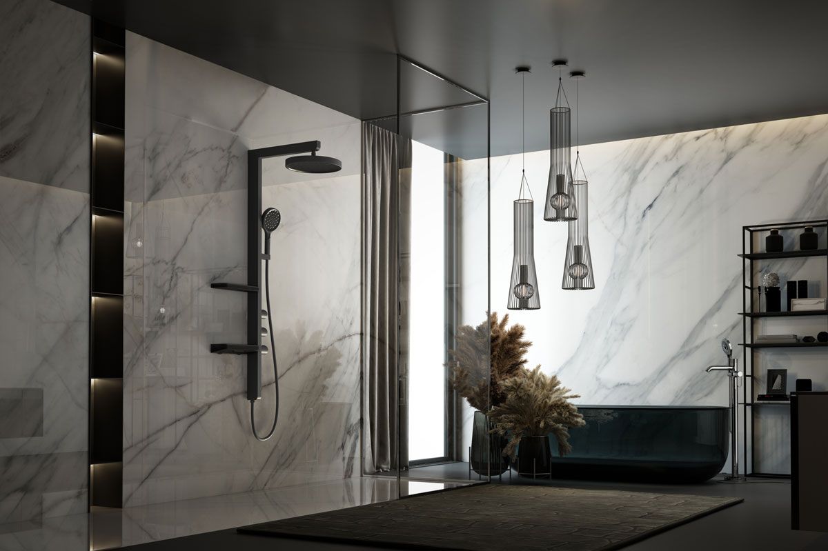 Душевая система Vincea Inspire VSFS-3I11MB, с каскадным изливом, цвет черный матовый