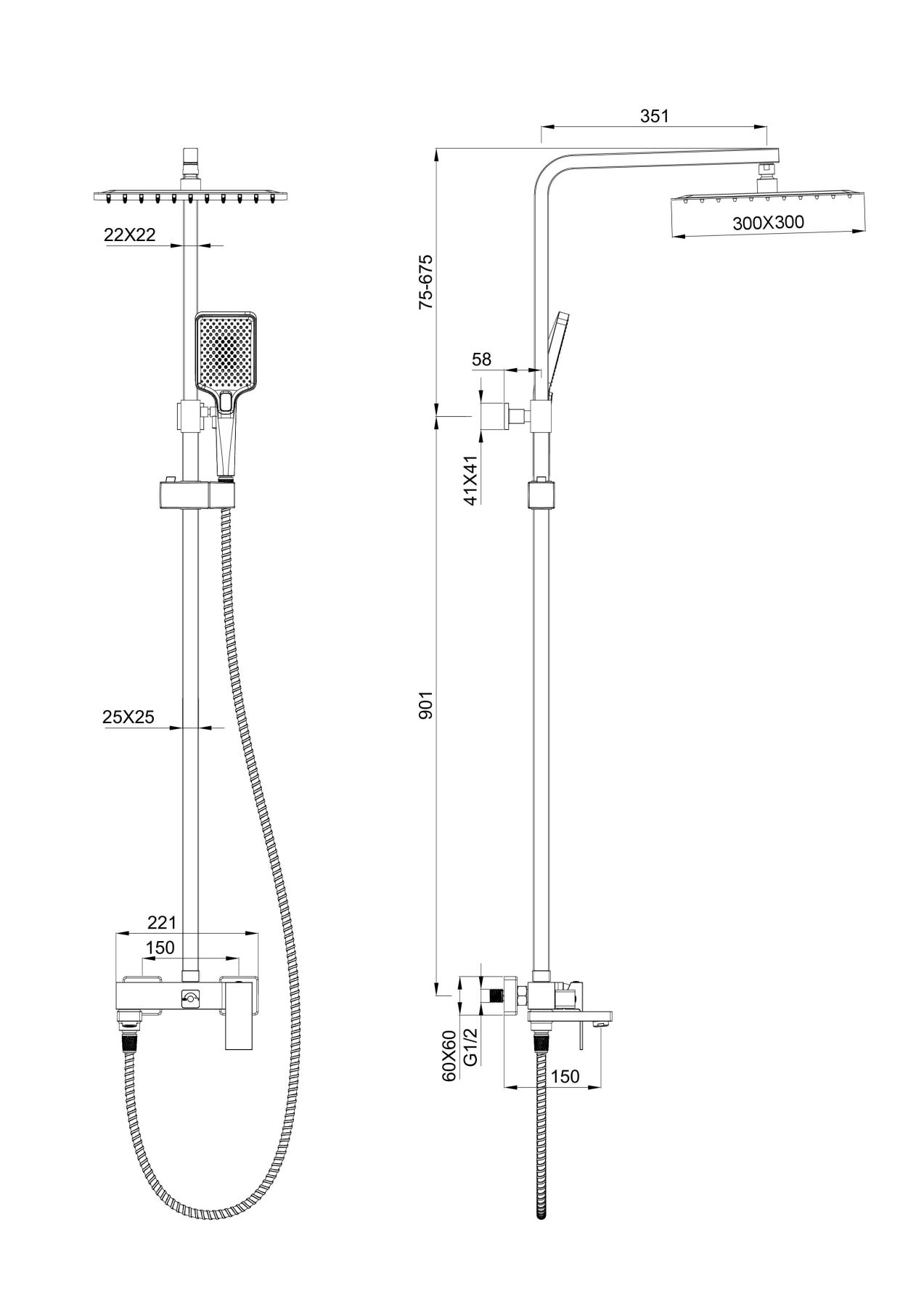 Душевая стойка Wonzon & Woghand Cube WW-88739016-BG брашированное золото