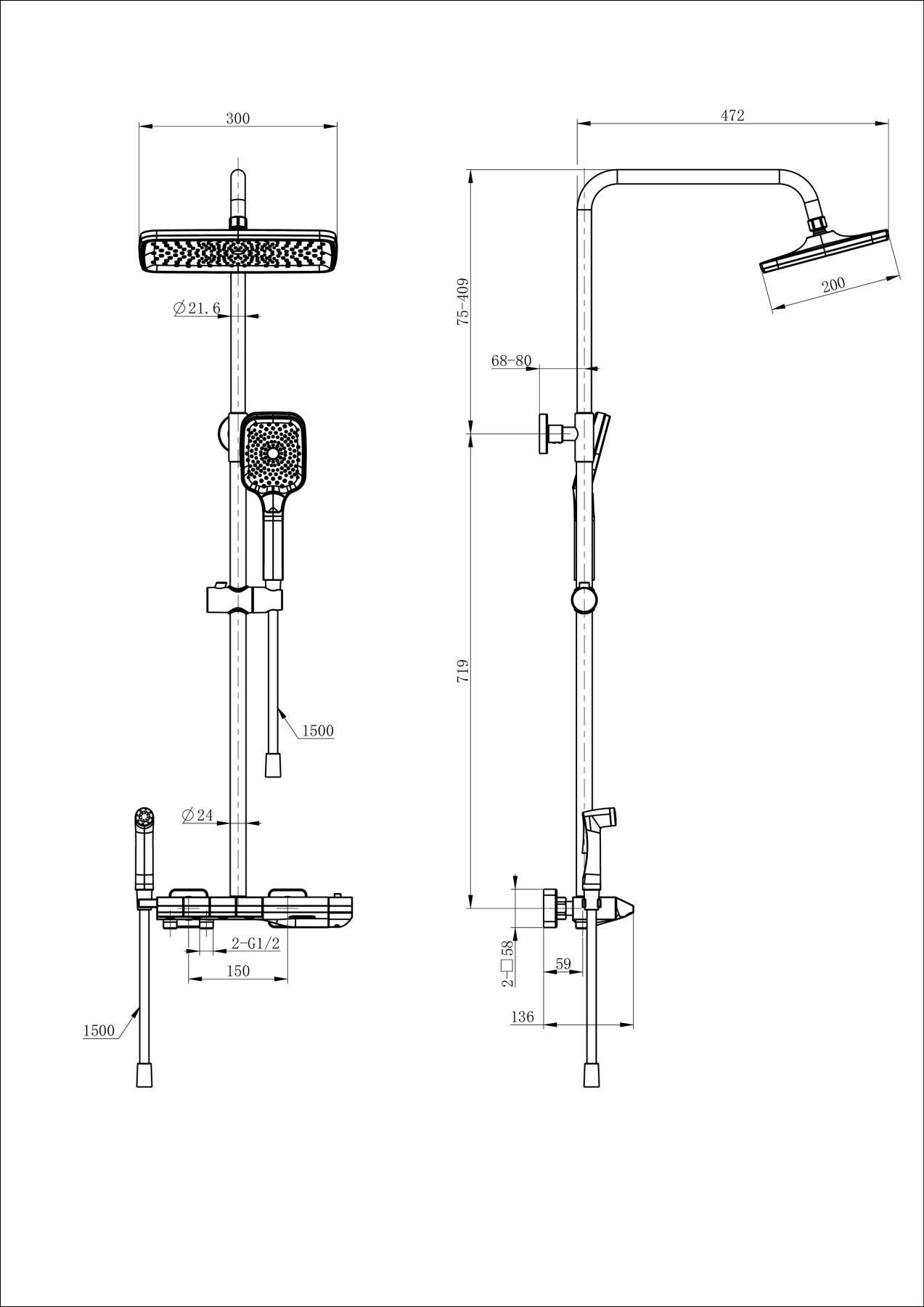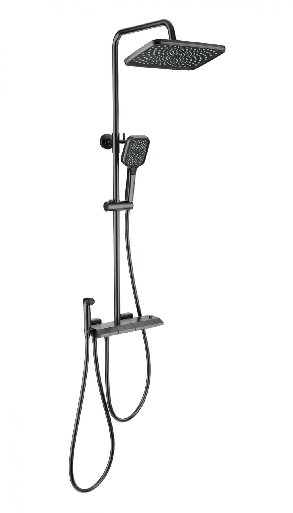 Душевая система с техническим душем и термостатом WONZON & WOGHAND MUSE Piano, Темный графит (WW-B4132-A-BGG)