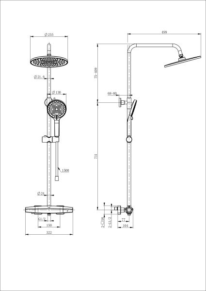 Душевая стойка Wonzon & Woghand Neo WW-B3045-A-BG с термостатом брашированное золото купить