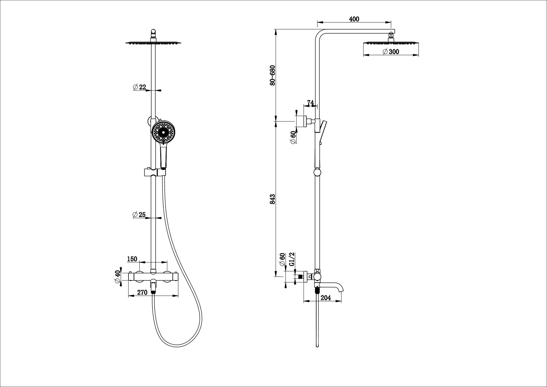 Размер верхнего душа, см:30