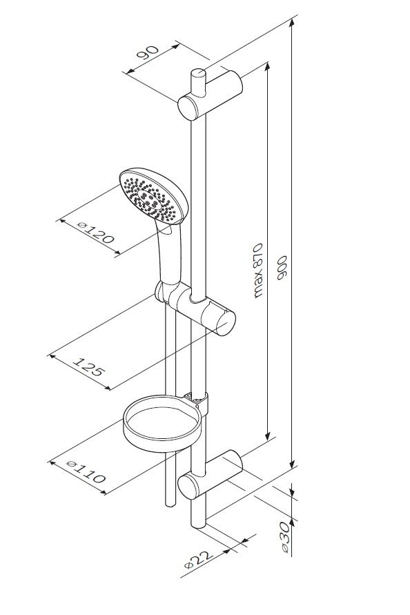 Душевой гарнитур Am.pm Spirit V2.0 F0170A000 120 мм штанга 900 ммДушевой комплект: душевая штанга 900 мм, душевой шланг 1750 мм, ручной душ 120 мм, мыльница Ø 110 мм, регулируемые по высоте держатели душевой штанги, 3 режима ручного душа (Spray, EnerJet, Spray + Massage), переключатель режимов Simple Switch Push, функция Rub&Clean для легкой очистки душевых форсунок, регулируемый в трех плоскостях держатель ручного душа, шарнирное соединение защищает душевой шланг от перекручивания.