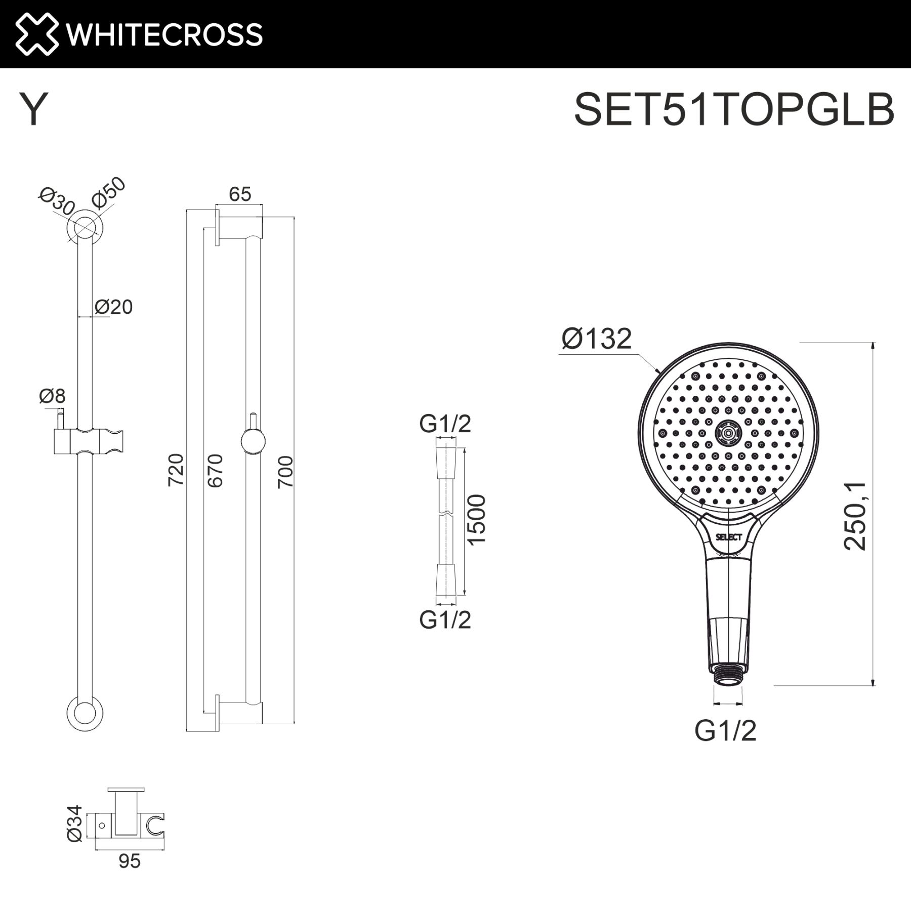 Душевой гарнитур на штанге WHITECROSS SET51TOPGLB брашированное золото