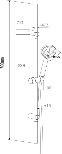 Душевой гарнитур RedBlu by Damixa Origin One 918100000 штанга 700 мм