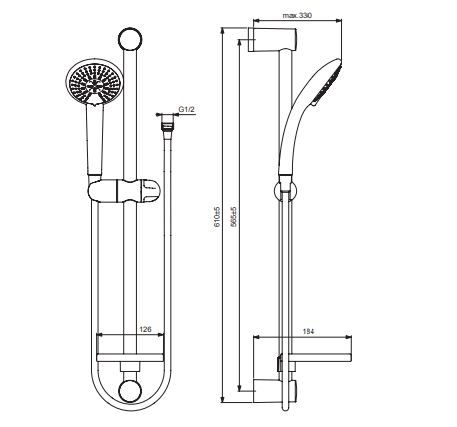 Штанга душевая 600мм, Ø24мм