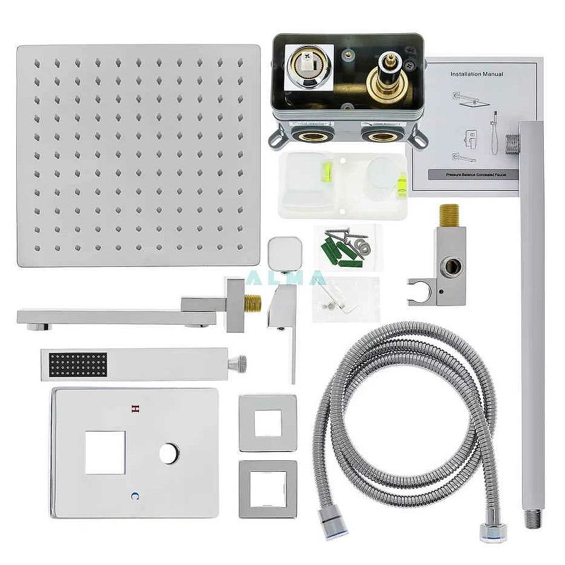 В правильно выполненном дизайне ванной комнаты нет ни одной лишней детали. Душевая система- это не только высококачественные современные технологии, это стильный дизайн и возможность добавить интересный акцент. Например, выбрав элегантный встраиваемый душевой комплект Elbe на 3 положения. Душ для тех, кто ценит каждый момент своей жизни. Комплектация: ? Излив поворотный латунь 24 см. ? Верхняя лейка нержавеющая сталь размер 25*25 см. ? Ручная лейка нержавеющая сталь. ? Длина верхнего кронштейна 40 см. ? Шланг 150 см. ? Встраиваемый смеситель латунь ? Глубина его погружения в стену 8 см.