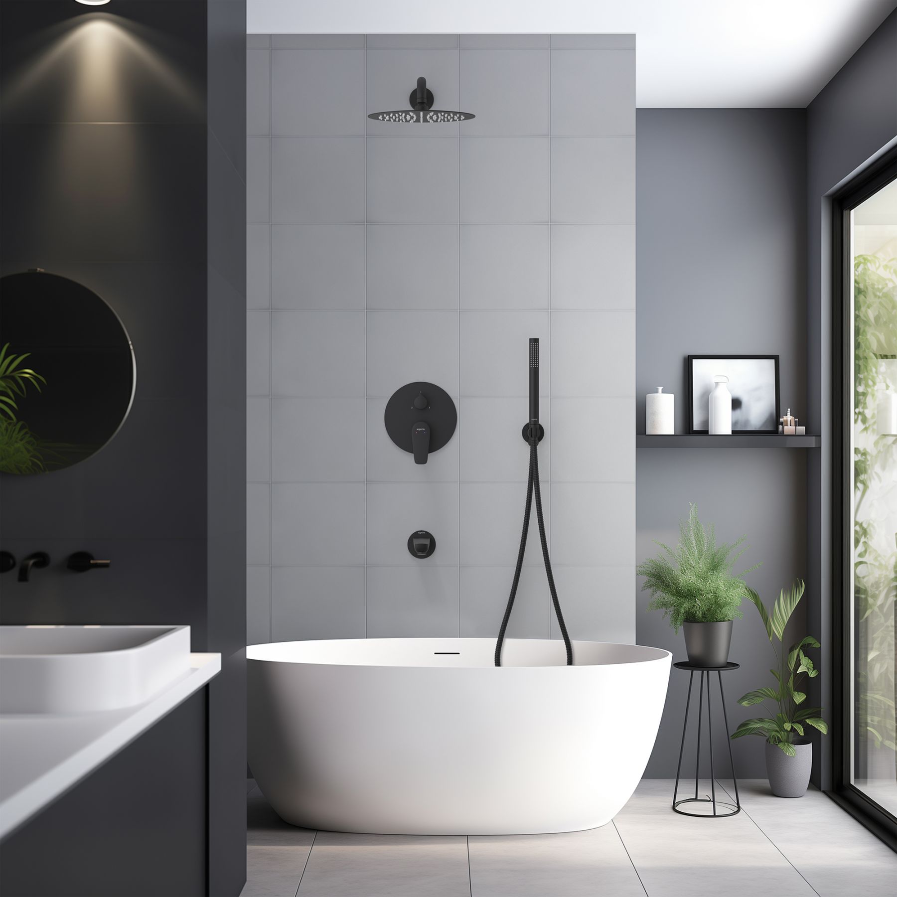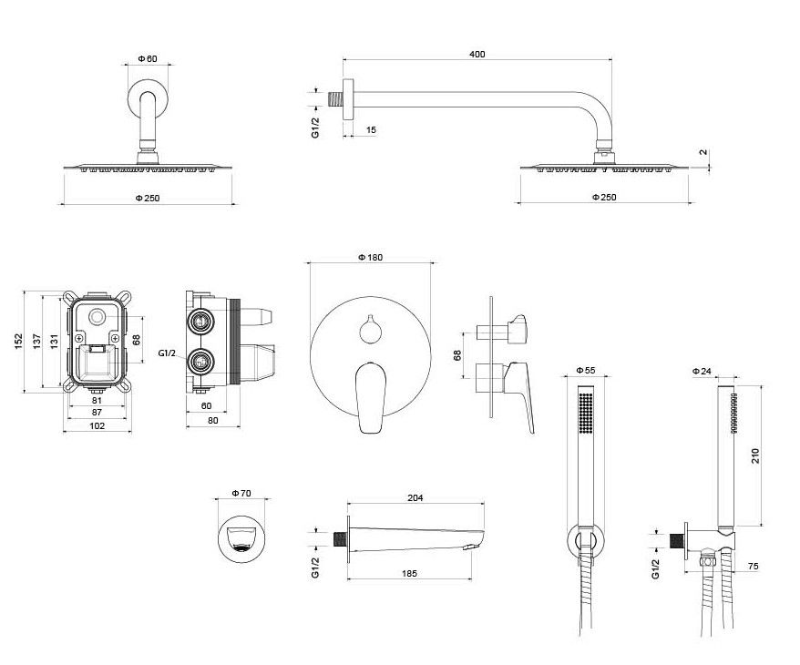 • Душевой гарнитур: лейка, шланг, шланговое подсоединение с держателем