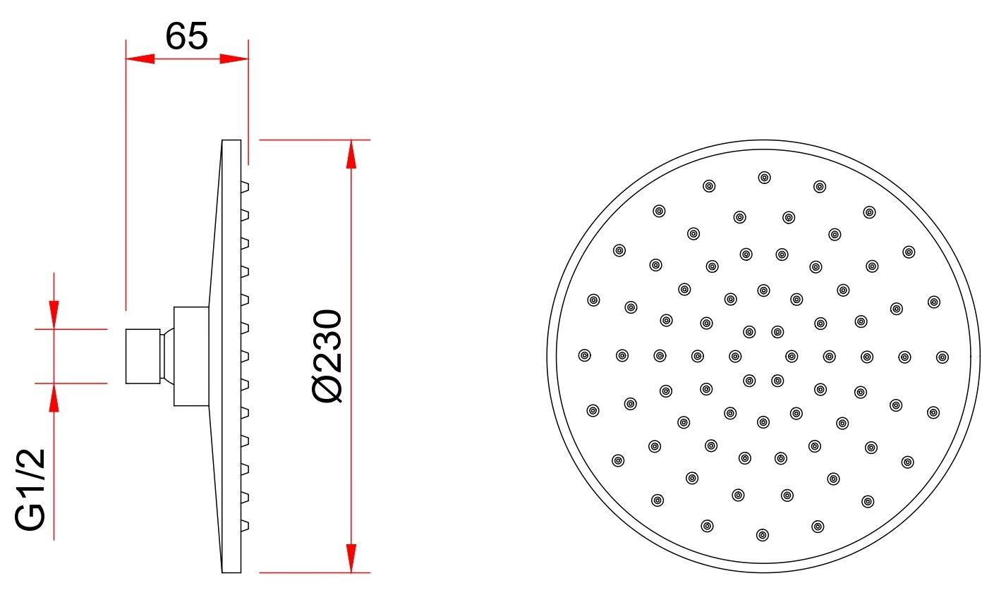 • Размер верхнего душа, см: