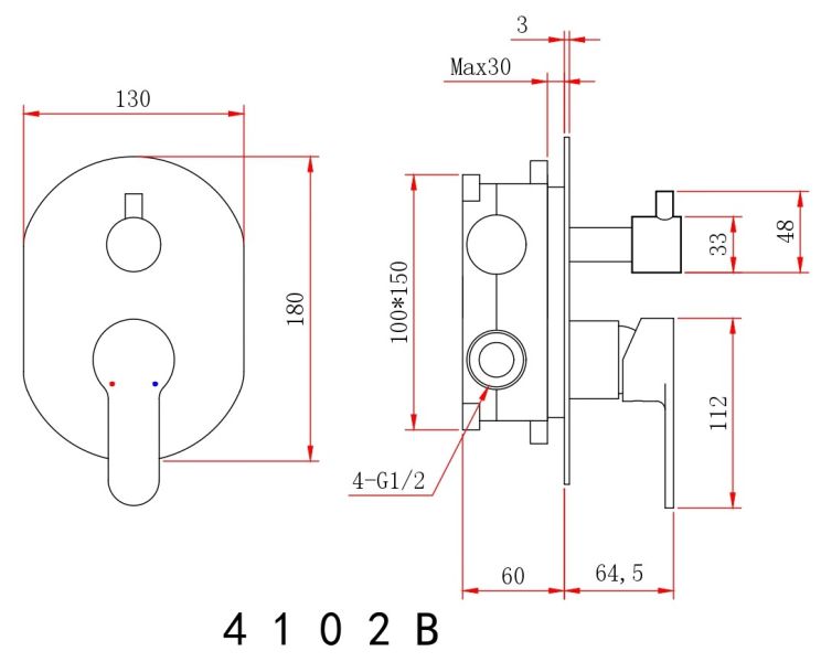 Размер верхнего душа, см:23