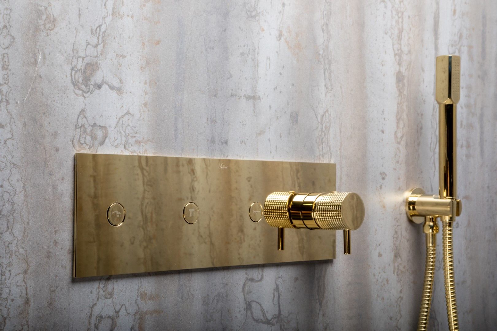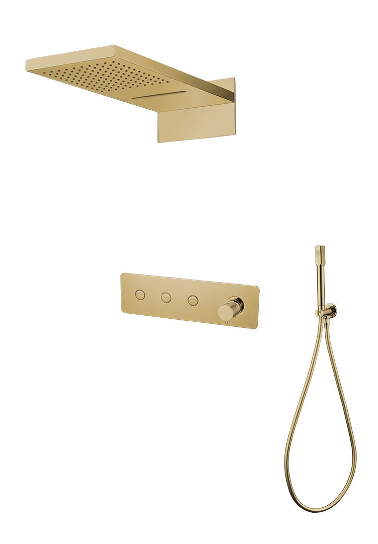 Душевой комплект Boheme Fusion 130-G С ВНУТРЕННЕЙ ЧАСТЬЮ великолепно дополнит вашу ванную комнату своим незаменимым функционалом. Душевые комплекты Boheme включают в себя все необходимое для создания идеального душевого пространства. Душ Boheme 130-G имеет 3 режима настройки потока струи, что даст возможность настройки системы под себя. Материал шланга металлический отлично препятствует скручиванию, и долгое время не теряет свои свойства. Диаметр верхнего (тропического) душа, которым оснащен 130-G составляет 55 см.Душевой комплект Boheme Fusion производится из высококачественных материалов (латунь), с отсутствием вредных примесей. Основной цвет исполнения Fusion 130-G – золото, идеально подходящий к душевой зоне выполненной в современном стиле. Бренд Boheme – Италия, все душевые системы произведены с использованием современных технологий. Душевой комплект Boheme Fusion 130-G С ВНУТРЕННЕЙ ЧАСТЬЮ верный выбор при создании комфортной душевой зоны в современной ванной.