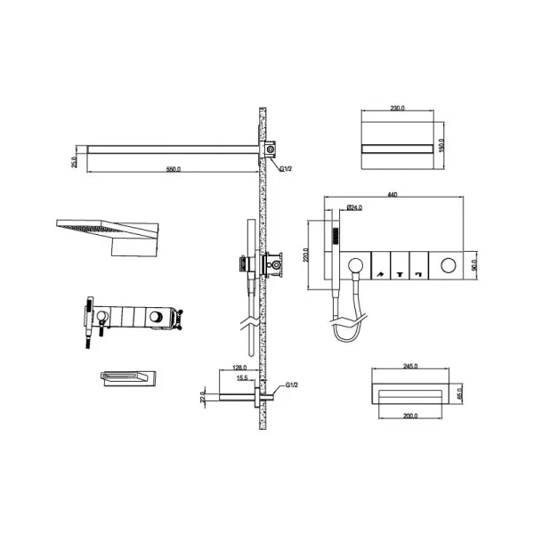 Ультра плоский дизайн, инновационное управление режимами позволит создать идеальный комфорт. Верхний душ размером 550мм*230мм с функцией тропического душа. Форсунки soft-silicone с функцией антикальк и комфортной очисткой. Магнитный держатель лейки Каскадный излив как дополнительная опция. Картридж Sedal, переключатели Neoperl.