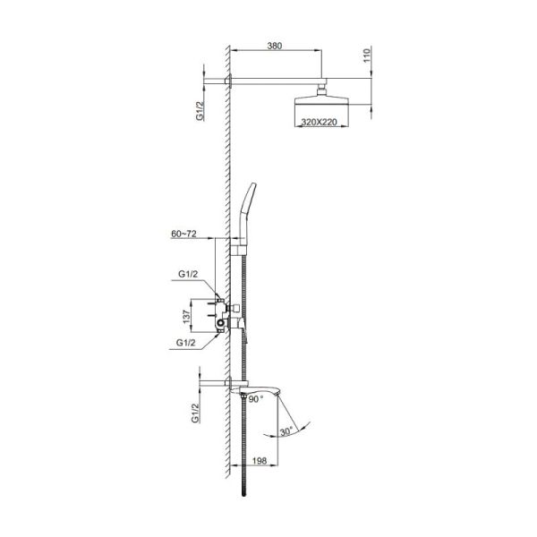 • Размер верхнего душа, см: