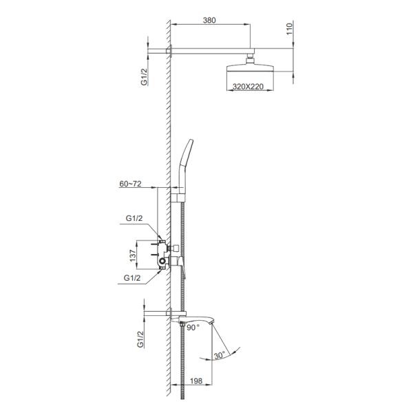 • Размер верхнего душа, см: