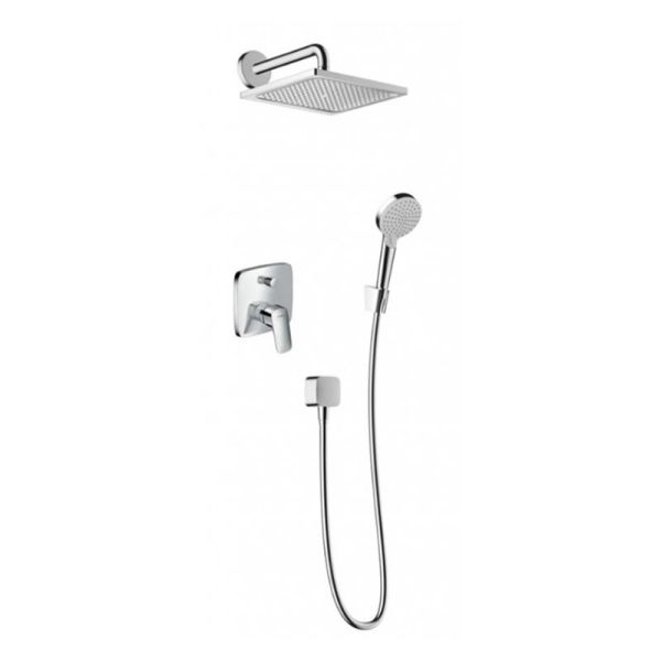Душевая система скрытого монтажа Hansgrohe Crometta E 240 1jet с однорычажным смесителем, хром, 27957000Состоит из: верхний душ, ручной душ, держатель верхнего душа, однорычажный смеситель для ванны, скрытая часть, настенный вывод, держатель для душа, шланг для душа
