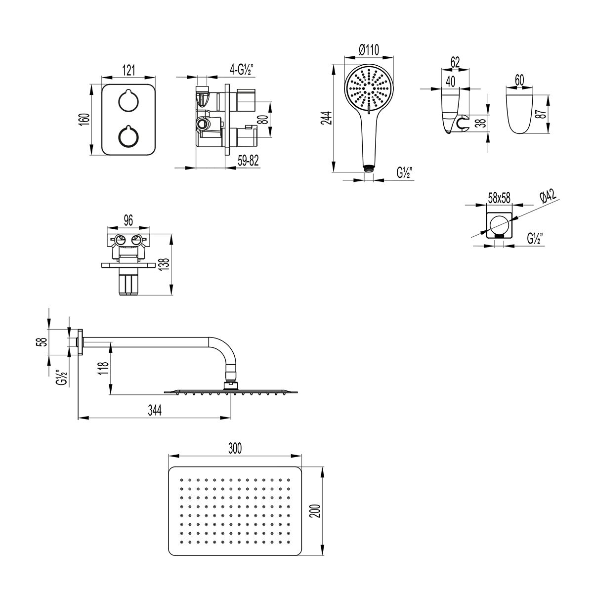 - Верхняя поворотная душевая лейка «Тропический дождь» 200х300 мм
