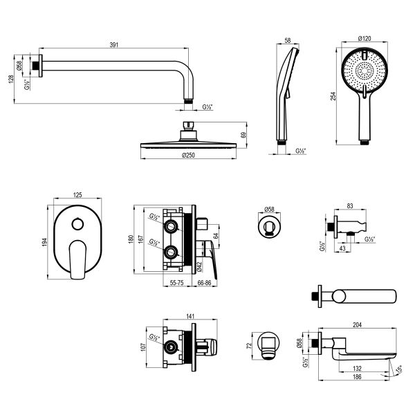 • Верхняя поворотная душевая лейка «Тропический дождь» Ø250 мм