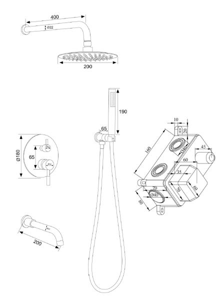 Душевой комплект РМС SUS129-1S нержавеющая сталь