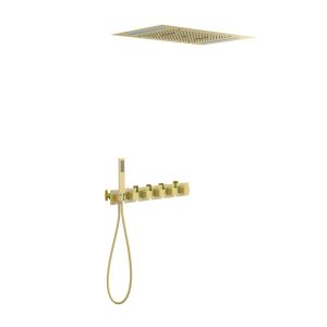 Цвет "матовое золото" никогда не выйдет из моды, во все времена драгоценный металл был признаком богатства.Встраиваемая душевая система с термостатом Timo Petruma 5229 относится к премиальному сегменту, предназначена для монтажа в полой или твердой стене. Термостатический картридж поддерживает стабильную температуру воды, обеспечивая максимально комфортные условия для принятия водных процедур. Встроенный потолочный душ большого размера создает имитацию проливного дождя, вода обливает человека целиком. Регулируя напор воды можно получить массажное воздействие, что очень полезно для здоровья. Основные преимущества встроенной системы: элегантный внешний вид, все коммуникации и крепления спрятаны в стену и потолок, снаружи видны только декоративные элементы. Установить встроенную систему можно в любом месте. Сложностей монтажа не возникает при установке элементов душевой системы опытным сантехником. Внимательно изучите инструкцию по монтажу и эксплуатации.