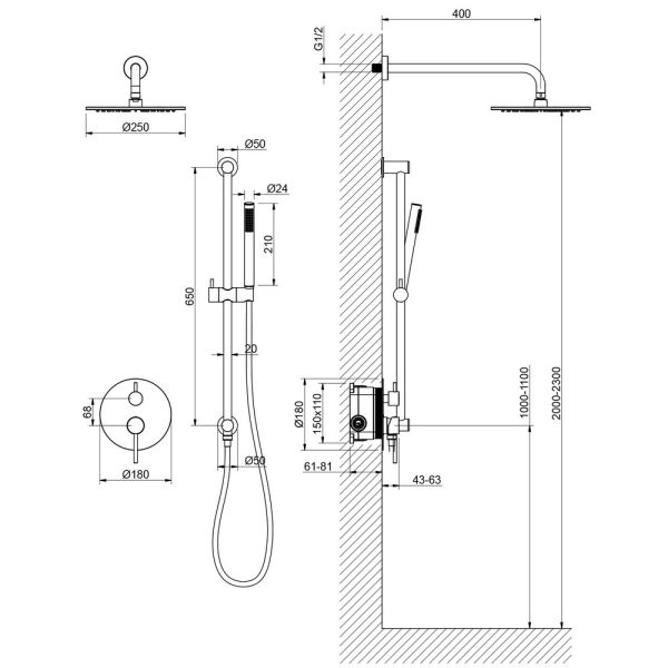 Цвет "матовое золото" никогда не выйдет из моды, во все времена драгоценный металл был признаком богатства.Встраиваемая душевая система Saona 2309, предназначена для монтажа в полой или твердой стене. Основные преимущества встроенной системы: коммуникации, крепления и механизмы спрятаны в стену и видны только декоративные элементы. Установить встроенную систему можно в любом месте. Cтильная стойка из латуни позволяет установить ручную лейку-карандаш на необходимую высоту. Использовать такой смеситель очень удобно, регулировка температуры и напора воды осуществляется одним рычагом. Регулируя напор воды в режиме "тропический душ", можно получить массажное воздействие различной интенсивности. Переключение режимов подачи воды (тропический душ, ручная лейка) осуществляется поворотом керамического дивертора. Сложностей монтажа не возникает при установке элементов душевой системы опытным сантехником. Внимательно изучите инструкцию по монтажу и эксплуатации.