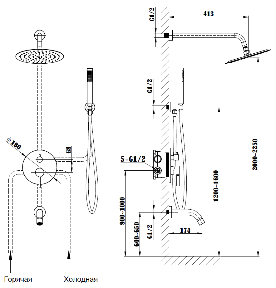 Душевой комплект Vincea Villa VSFW-1VL3MB встраиваемый, трехрежимный, черный купить