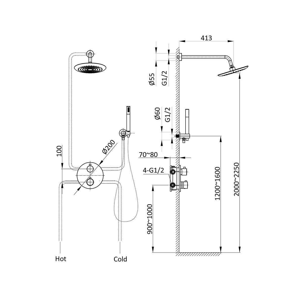 круглыйРазмер верхнего душа, мм: