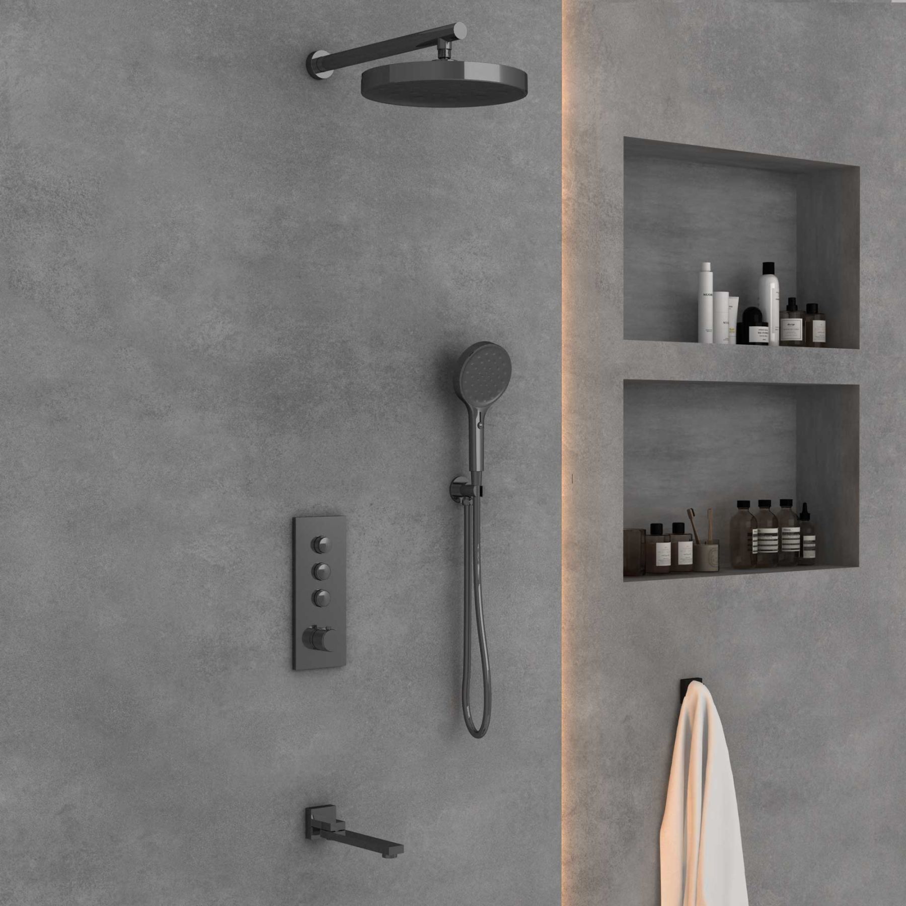 Душевой комплект Vincea VSFW-433TI2GM встраиваемый, термостатический, трехрежимный, вороненая сталь купить