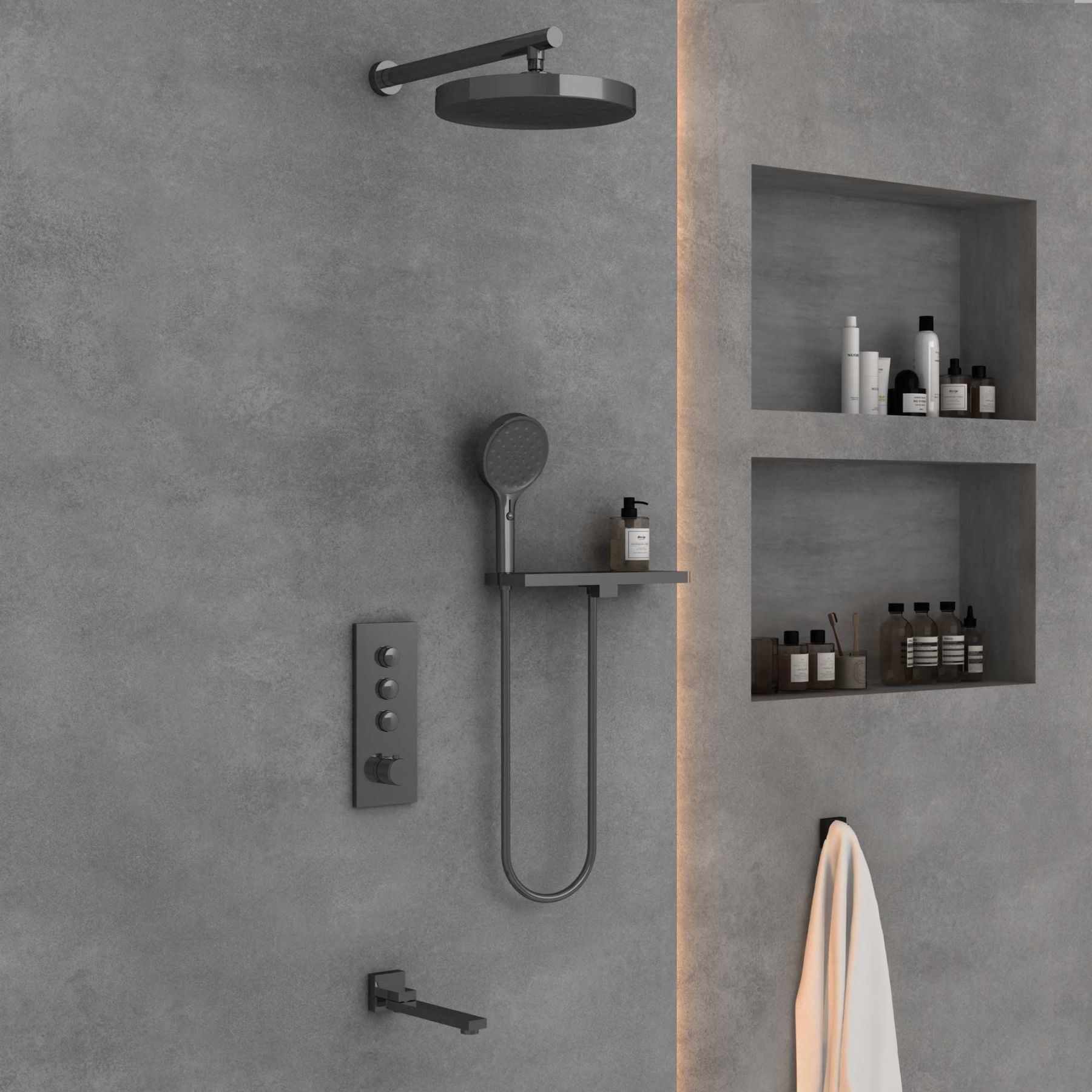Душевой комплект Vincea VSFW-433TI2RGM встраиваемый, термостатический, трехрежимный, вороненая сталь купить