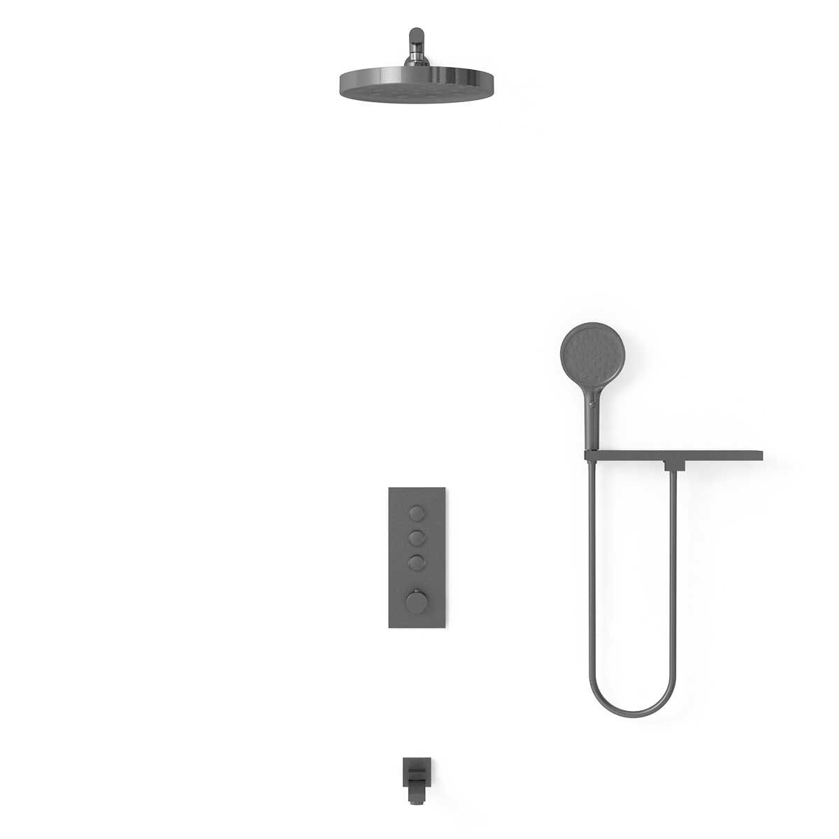 Душевой комплект Vincea VSFW-433TI2RGM встраиваемый, термостатический, трехрежимный, вороненая сталь