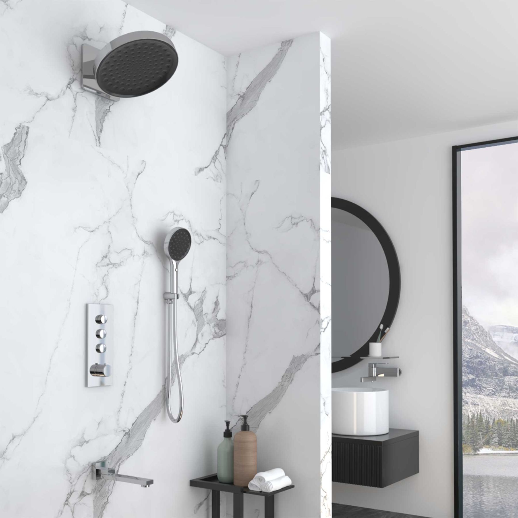 Душевой комплект Vincea VSFW-433TI2RGM встраиваемый, термостатический, трехрежимный, вороненая сталь купить