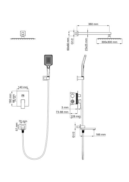 Душевая система встраиваемая WONZON & WOGHAND CUBE 2.0, Брашированное золото (WW-88087068-BG... Подробнее