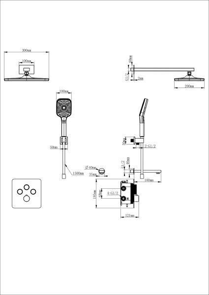 Душевая система с термостатом встраиваемая WONZON & WOGHAND, Темный графит (WW-B4005-BGG)
