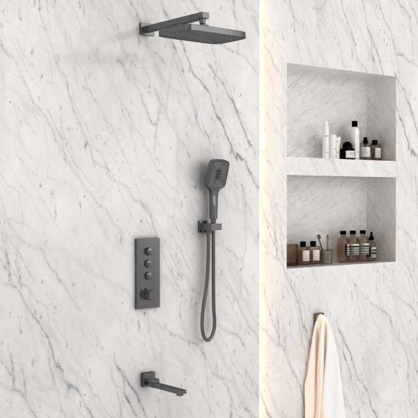 Душевой комплект Vincea VSFW-433T1GM встраиваемый, термостатический, трехрежимный, вороненая сталь