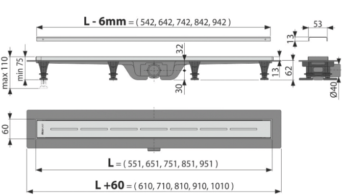 • Диаметр сливной трубы 40 mm