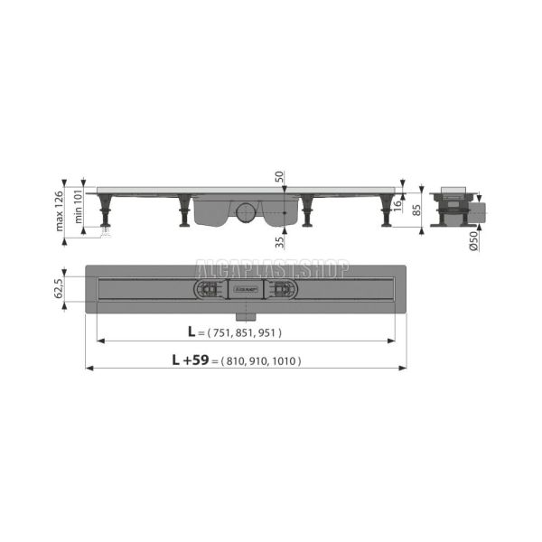 Душевой лоток AlcaPlast с порогами для перфорированной решетки без гидрозатвора 85см хром APZ22-850 купить