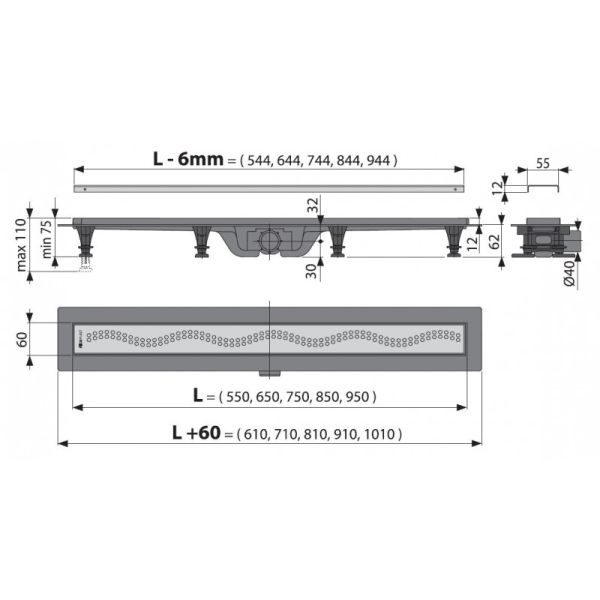 Душевой лоток AlcaPlast Simple с решеткой и опорами APZ9-950M