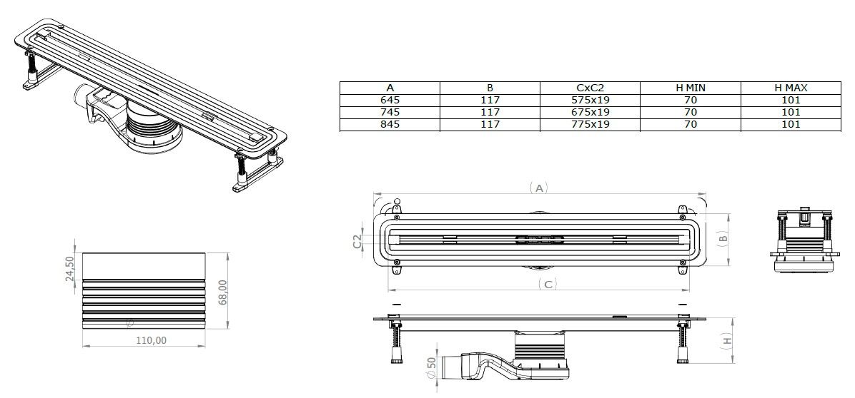 Душевой лоток Allen Brau Liberty 9.50002.SS для поддона 800 мм нержавеющая стальКласс нагрузки K=300 кг