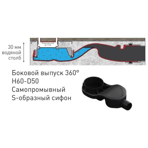 Душевой лоток Berges B1 Keramik 800 (090119) S-сифон боковой, матовый хром купить