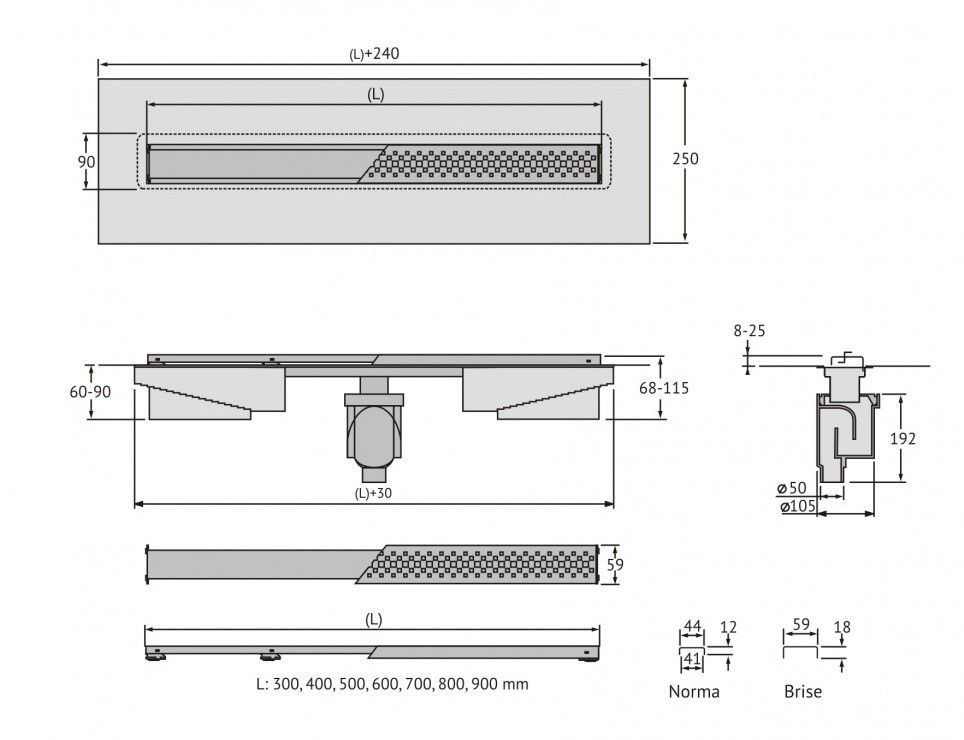 Душевой желоб Berges C1 Norma это современное функциональное решение для оборудования водоотвода во внутренних помещениях. Выполнен из высококачественной нержавеющей стали AISI 304, что обеспечивает жесткую фиксацию в основании пола и длительное использование.Изоляционная мембрана, интегрированная в стальной корпус, гарантирует непроницаемость и совместима со всеми изоляционными материалами.Усовершенствованная система настройки высоты изделия позволяет выполнить легкую регулировку под заданную толщину покрытия, с минимальной высотой монтажа (заливки) - 65мм. Поворотный сифон с гидрозатвором имеет высокую пропускную способность 48 л/мин и оригинальную самопромывную конструкцию.Съемная сетка для волос (грязеуловитель) предотвращает попадание мусора в сифон и позволяет легко проводить очистку желоба. Благодаря возможности переворота решетки и вклейки плитки, вы ощутите цельность пространства в вашей ванной комнате и душевой.