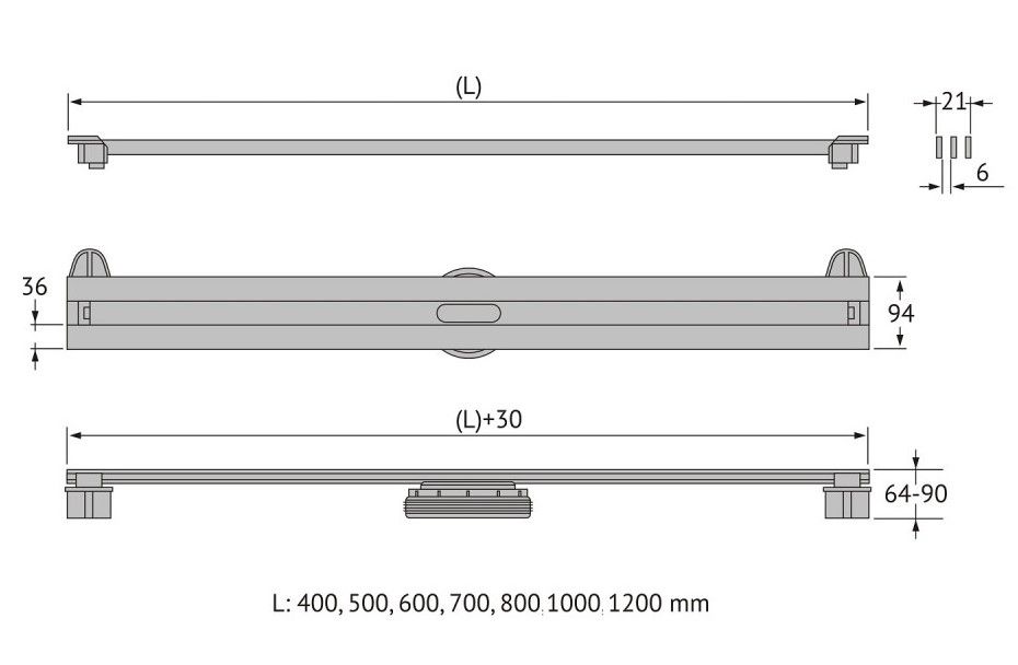 Решетка и декоративные заглушки, нержавеющая сталь AISI 304Комплект регулировки решетки по высоте от 8 до 25 ммСетка для волос, пластикКомплект гидроизоляцииЖелоб водосток, нержавеющая сталь AISI 304Монтажная заглушка, пенопластРегулируемые по высоте ножки, пластикСамопромывной S-образный сифон PPВертикальный выпуск 48 л/минМонтажный ключ, пластик