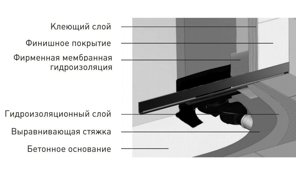 Решетка и рамка, нержавеющая сталь AISI 304Комплект регулировки рамки и монтажные углыСетка для волос, нержавеющая сталь AISI 304Комплект гидроизоляцииЖелоб водосток пристенныйPP Регулируемые по высоте ножки, пластикСамопромывной S-образный сифон с переходником PPВертикальный выпуск S-сифон D50/105мм H30/135мм, пропускная способность 42л/мин, монтаж 360°Монтажный ключ, пластик
