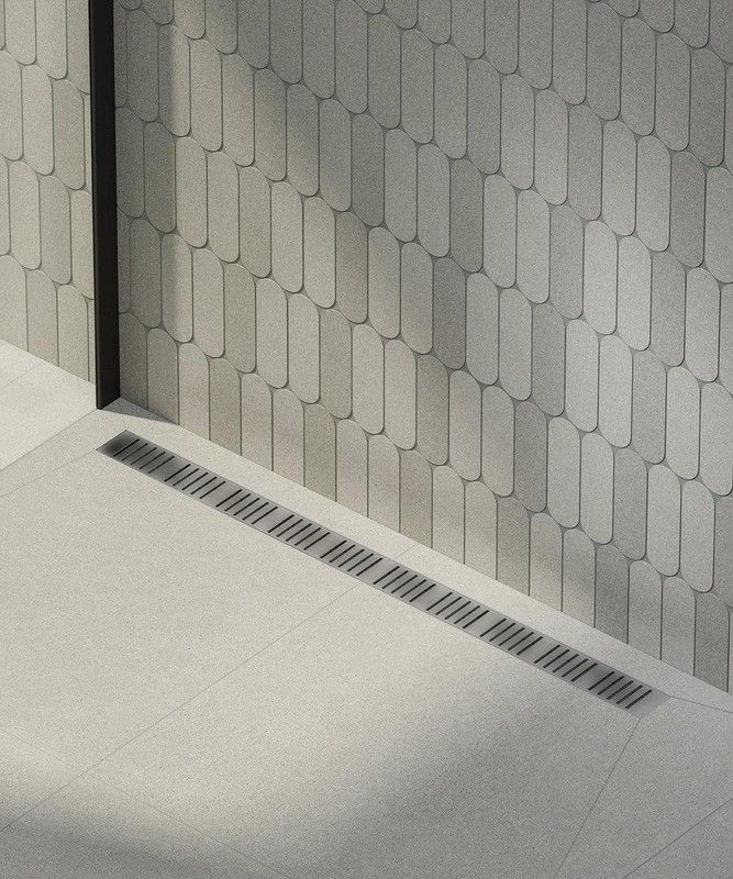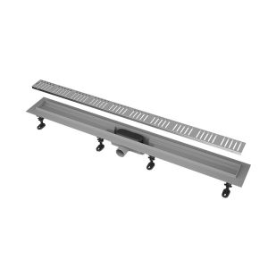 Душевой лоток с двусторонней решеткой из нержавеющей стали используется для отвода воды из душевой зоны с безбарьерным доступом. Решётку можно установить двумя способами: в первом случае сверху — полоса из цельной нержавеющей стали, во втором — закреплённая на решётке плитка или мозаика толщиной до 12 мм. Водоотводящий жёлоб выполнен из нержавеющей стали, прошедшей электрохимическую обработку. Комбинированный гидрозатвор обеспечивает надежную защиту от проникновения запаха. Высота монтажа до 81 мм. Регулируемые монтажные ножки позволяют быстро и удобно установить желоб и выровнять его по горизонтали.