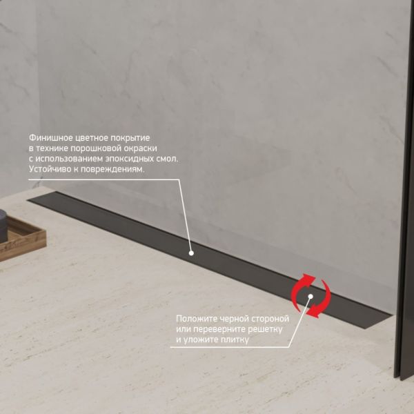 Пристенный лоток, черный, без рамкиГоризонтальный выпуск облегчает монтаж, трубы можно устанавливать по полу, что сэкономит бюджет, а пристенный монтаж бережет место в душевой.Европейское качествоКачество, подтвержденное гарантией производителя PAINI 25 лет. Срок службы не менее 30 лет.Реальная экономия за счет уникальной конструкцииМинимальная высота монтажа – 65 мм, не требует масштабной заливки пола и сложной установки. Ножки регулируются от 65 до 87 мм.Высокая пропускная способностьПропускная способность от 30 до 37 л/мин в лотках "ПАИНИ" не позволит воде задерживаться в душевой.Надежная защита от неприятных запаховКомбинированный затвор (сухой + гидрозатвор) не пропускает запахи в помещение, надежно защищая вас от неприятных сюрпризов. Такая конструкция сифона в душевом лотке считается самой универсальной и надежной защитой от запахов и бактерий. Сифоны такой конструкции отличает двухуровневая защита: водяная пробка не пропускает запахи при постоянной эксплуатации, а воздушная поплавковая система является дополнительной преградой, при пересыхании водяной пробки.Разнообразие размеровРазмерный ряд лотков: 650, 750, 850 мм.Покрытие, устойчивое к повреждениямКорпус моделей в цвете черный (YO) защищен финишным цветным покрытием в технике порошковой окраски с использованием эпоксидных смол для большей устойчивости к повреждениям.КомплектацияПереходник для выпуска D50 мм позволяет не задумываться о монтаже – подойдет на любую трубу. Гидроизоляционная лента в комплекте.