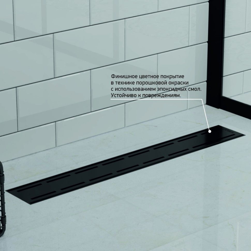 Душевой лоток коллекция LINE, черный, без рамкиГоризонтальный выпуск облегчает монтаж, трубы можно устанавливать по полу, что сэкономит бюджет.Европейское качествоКачество, подтвержденное гарантией производителя PAINI 25 лет. Срок службы не менее 30 лет.Реальная экономия за счет уникальной конструкцииМинимальная высота монтажа – 65 мм, не требует масштабной заливки пола и сложной установки. Ножки регулируются от 65 до 87 мм.Высокая пропускная способностьПропускная способность от 30 до 37 л/мин в лотках "ПАИНИ" не позволит воде задерживаться в душевой.Надежная защита от неприятных запаховКомбинированный затвор (сухой + гидрозатвор) не пропускает запахи в помещение, надежно защищая вас от неприятных сюрпризов. Такая конструкция сифона в душевом лотке считается самой универсальной и надежной защитой от запахов и бактерий. Сифоны такой конструкции отличает двухуровневая защита: водяная пробка не пропускает запахи при постоянной эксплуатации, а воздушная поплавковая система является дополнительной преградой, при пересыхании водяной пробки.Разнообразие размеровРазмерный ряд лотков от 450 до 850 мм. Можно найти лоток, подходящий именно в ваш интерьер.Покрытие, устойчивое к повреждениямКорпус моделей в цвете черный (YO) защищен финишным цветным покрытием в технике порошковой окраски с использованием эпоксидных смол для большей устойчивости к повреждениям.КомплектацияПереходник для выпуска D50 мм позволяет не задумываться о монтаже – подойдет на любую трубу. Гидроизоляционная лента в комплекте.