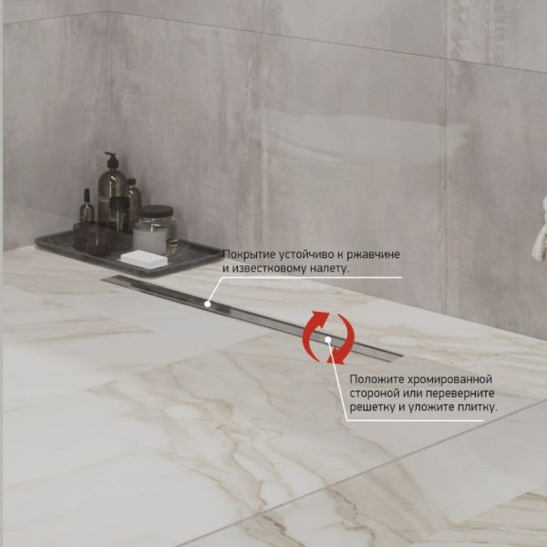Щелевой (узкий) лотокЩелевой лоток для душа SLIM LINE – ширина решетки всего 35 мм.Скройте лоток из вида - покройте его плиткой в один уровень с полом.Два варианта цвета – классический хром и черный матовый.Европейское качествоГарантия производителя 25 лет. Срок службы не менее 30 лет.Несколько вариантов монтажаМожно установить как на регулируемые ножки, так и на подставку из полистирола (входит в комплект). Поворотный на 360 градусов сифон – удобно подключить к коммуникациям, даже если установка труб выполнена с небольшими ошибками. Заливка пола при установке – от 70 мм.Два дизайна в одном изделииЛоток PAINI можно положить ровной стороной, а можно перевернуть и уложить на него плитку. Так получится максимально замаскировать слив воды.Гидрозатвор – защита от неприятных запаховВодяная пробка не пропускает запахи при постоянной эксплуатации.Разнообразие размеровРазмерный ряд лотков: 500, 600, 700 и 800 мм. Для любых размеров помещения.Покрытие, устойчивое к повреждениямРжавчина и известковый налет не наносят ущерба и не задерживаются на двойном хромовом покрытии Cromo3.Корпус моделей в цвете черный (YO) защищен финишным цветным покрытием в технике порошковой окраски с использованием эпоксидных смол для большей устойчивости к повреждениям.Уход за лотками «ПАИНИ» предельно прост – достаточно протереть мыльной губкой или тряпочкой.Универсальное подключениеВыпуск D50 мм – подойдет на любую трубу.