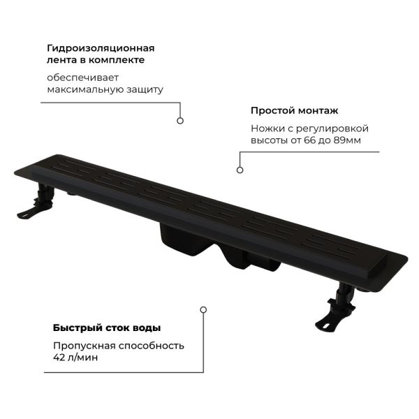 Душевой лоток RGW Drain Leo-30 60213060-04 чёрный
